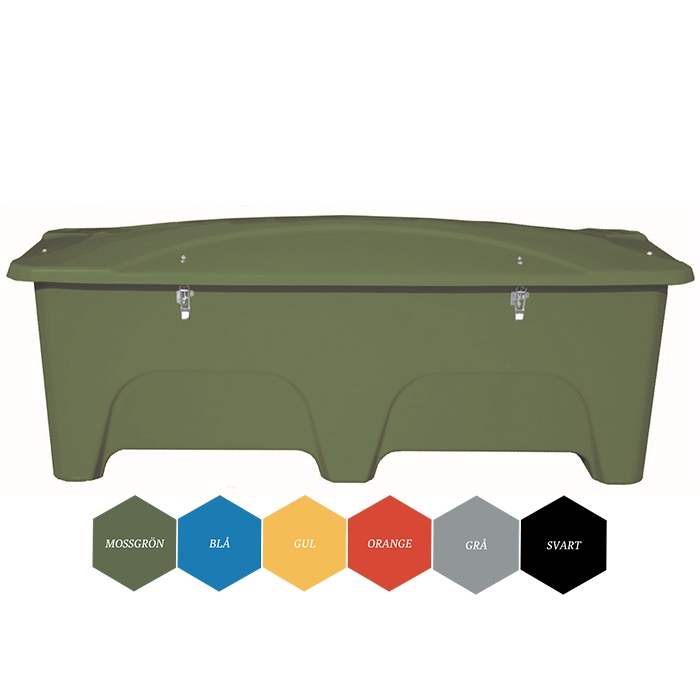 Stabil och kraftig vakuuminjecerad låda och lock med släta in- och utsidor med profilerat låsbart lock, Finns i 6 olika färger.