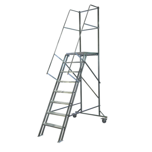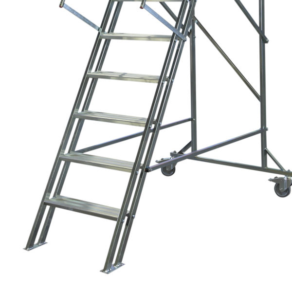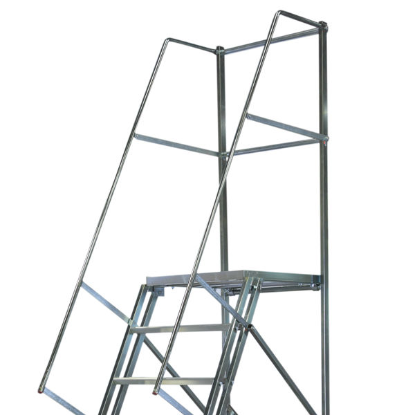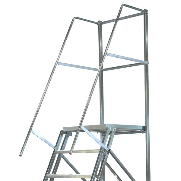 Plattformen i aluminium på 500 x 600 mm är halkskyddad och försedd med räcken för att ge dig en säker ståplats.