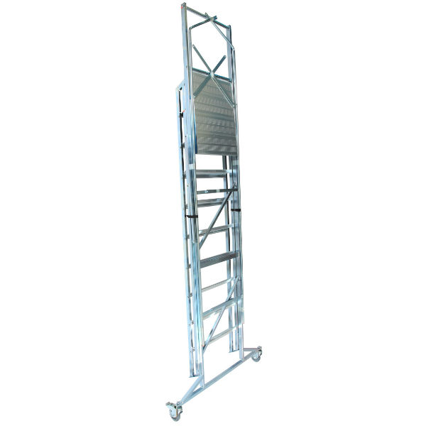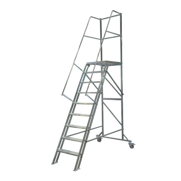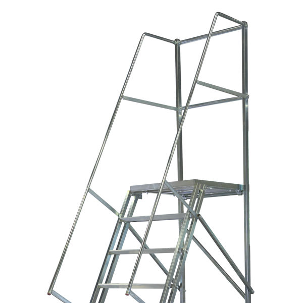 Plattformen i aluminium på 500 x 600 mm är halkskyddad och försedd med räcken för att ge dig en säker ståplats.