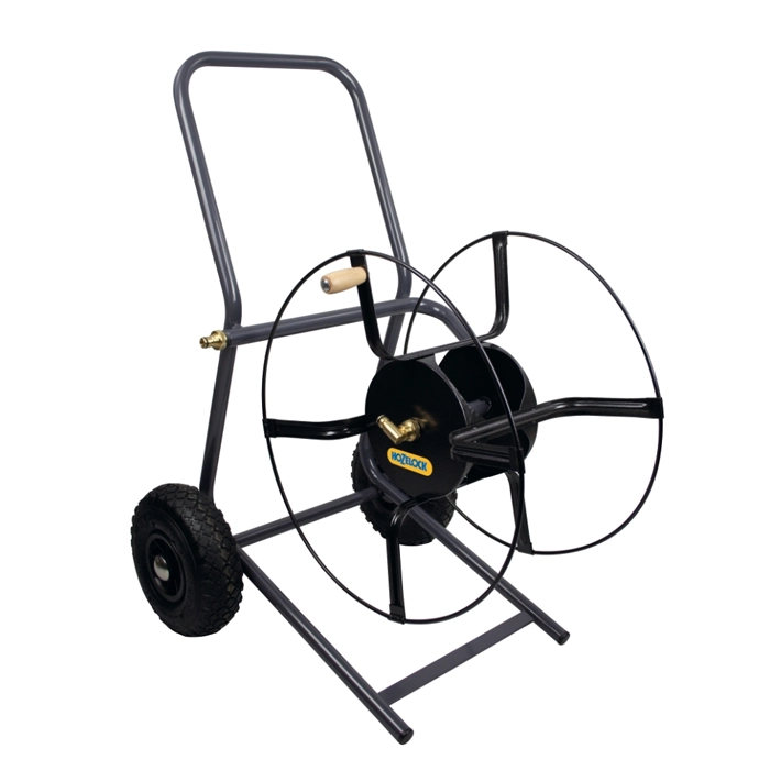 Denna slangvagn är konstruerad med ett robust grått stålchassi och en slitstark svart ståltrumma, vilket gör den både hållbar och stilren. Utrustad med svarta gummihjul är den enkel att köra, även på ojämna underlag, vilket gör den perfekt för olika typer av trädgårdar och bevattningsprojekt. Kopparkopplingarna är motståndskraftiga mot korrosion och säkerställer långvarig funktion, medan det praktiska trähandtaget gör upprullningen av slangen smidig och bekväm.