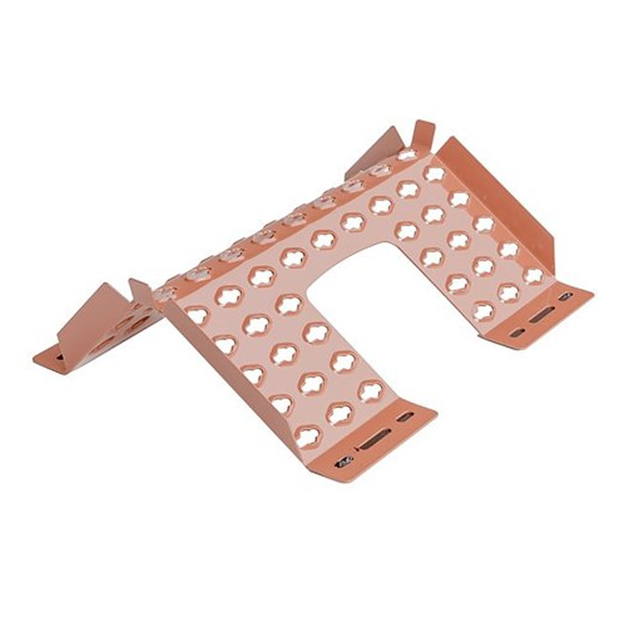 Taksteg för montage på tak av stål eller aluminium där takplåten minst är 0,5 mm stålplåt eller 0,6 mm aluminiumplåt, finns i två färger: Svart och Röd. Vid taklutning > 35° skall stegen vändas med den smalare stegytan uppåt. Stegen kan monteras rakt över varandra med 300 mm mellan stegen.