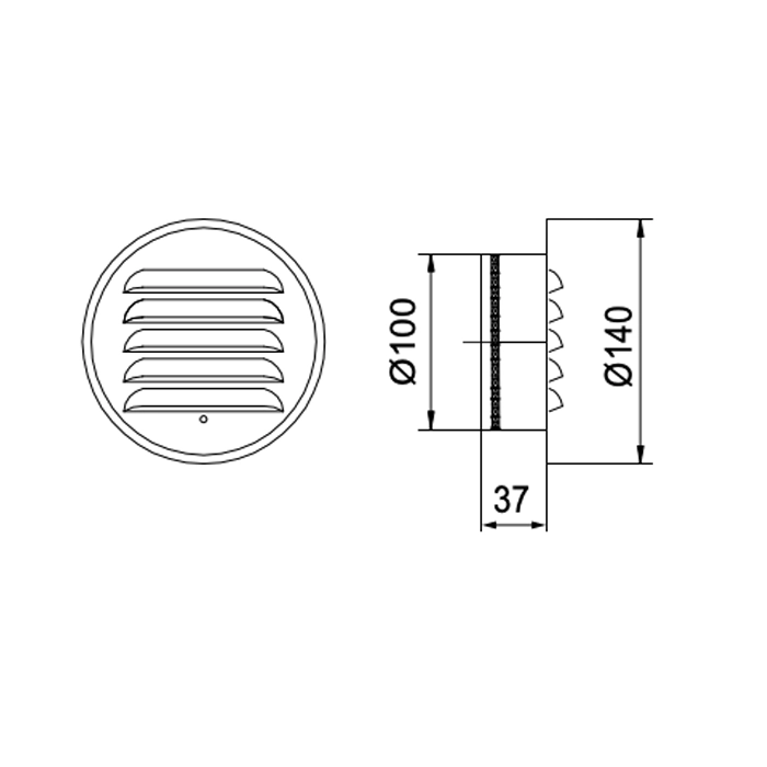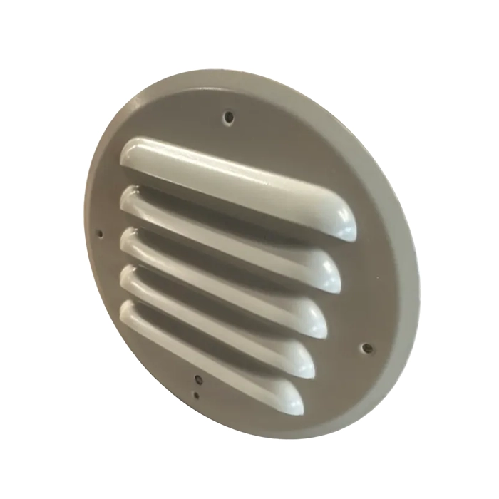 Den cirkulära modellen har en cirkulär anslutning på Ø100 mm, vilket gör den perfekt för användning på rundade eller vertikala ytor där effektiv luftflöde krävs.